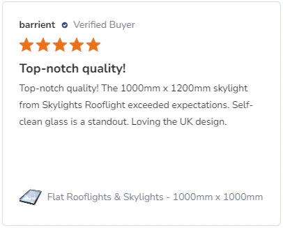 The frameless, minimalist design allows for uninterrupted views and ensures a sleek, modern appearance on your roof. Whether you’re looking to upgrade your current space or add a stylish touch to your new build, this rooflight provides both form and function, meeting all relevant British Standards and Building Regulations.